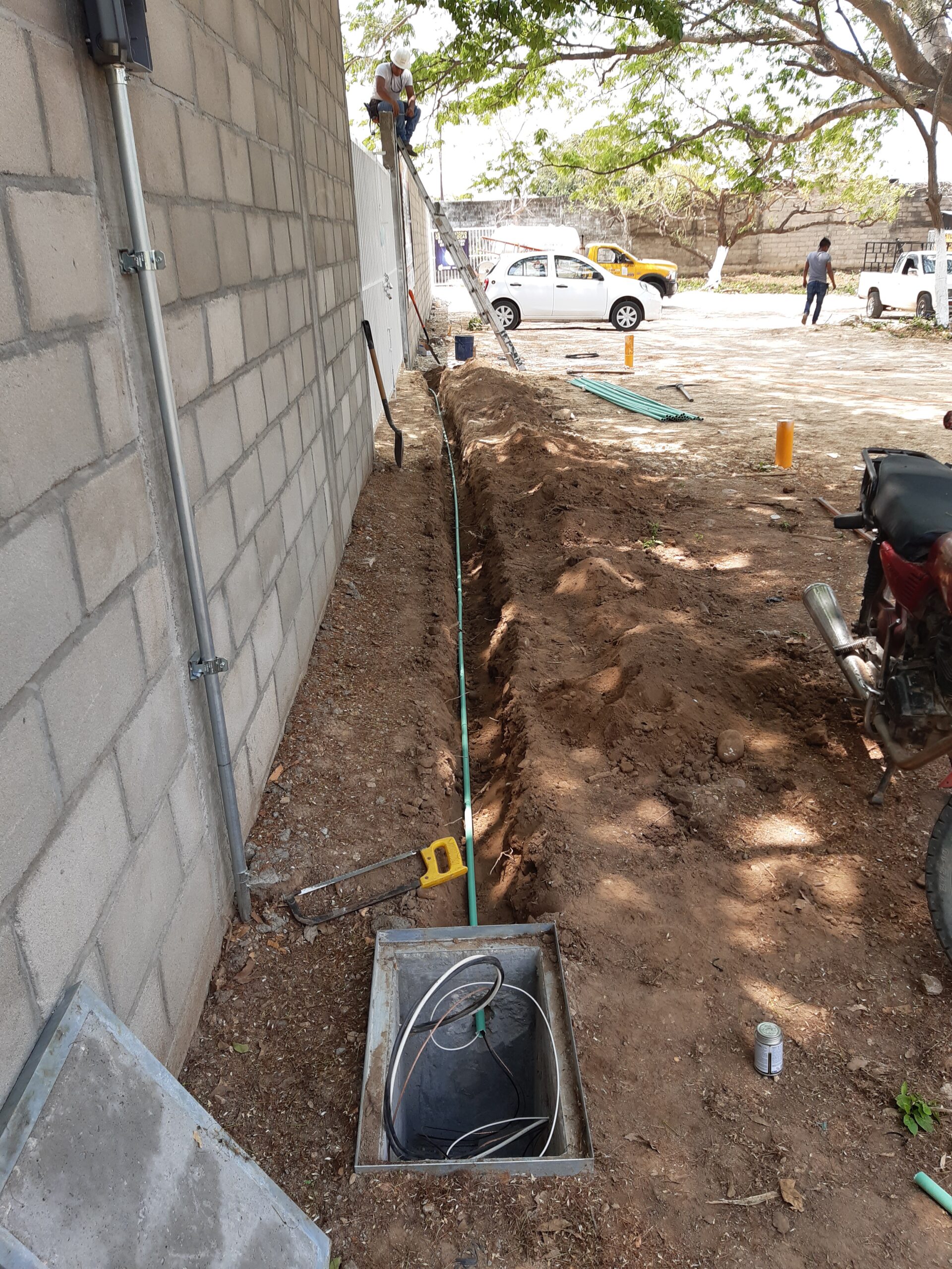INCLUYE: DESMANTELAMIENTO DE 4 POSTES DE ALUMBRADO EXTERIOR DE 6 METROS DE ALTURA CON LAMPARA LED DE 100W, 220 VOLTS, RECUPERACION DE CABLE ALIMENTADOR XLP AL. CAL. 6 AWG 2+1 Y RECUPERACION DE CABLE THW-LS CAL. 2 AWG QUE ALIMENTA A UN MOTOR-BOMBA AGUA.
